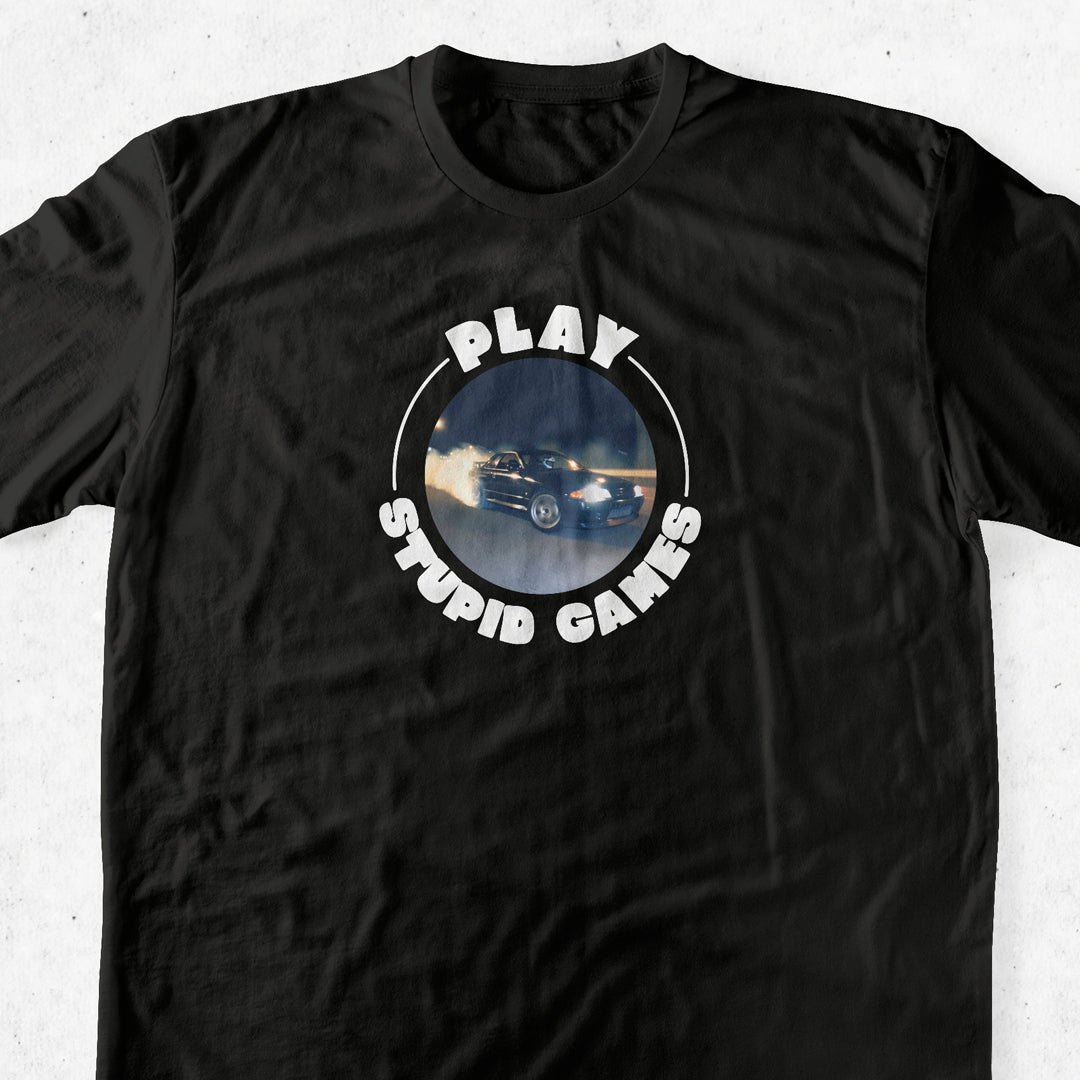 Playera manga corta Play Stupid Games, Win Stupid Prizes.